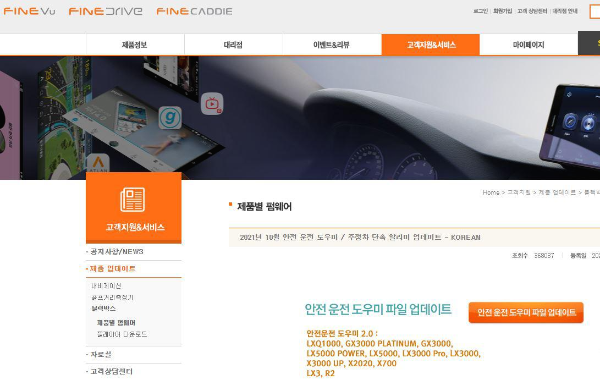2. 그리고 제품 업데이트 - 블랙박스 - 제품별 펌웨어 클릭