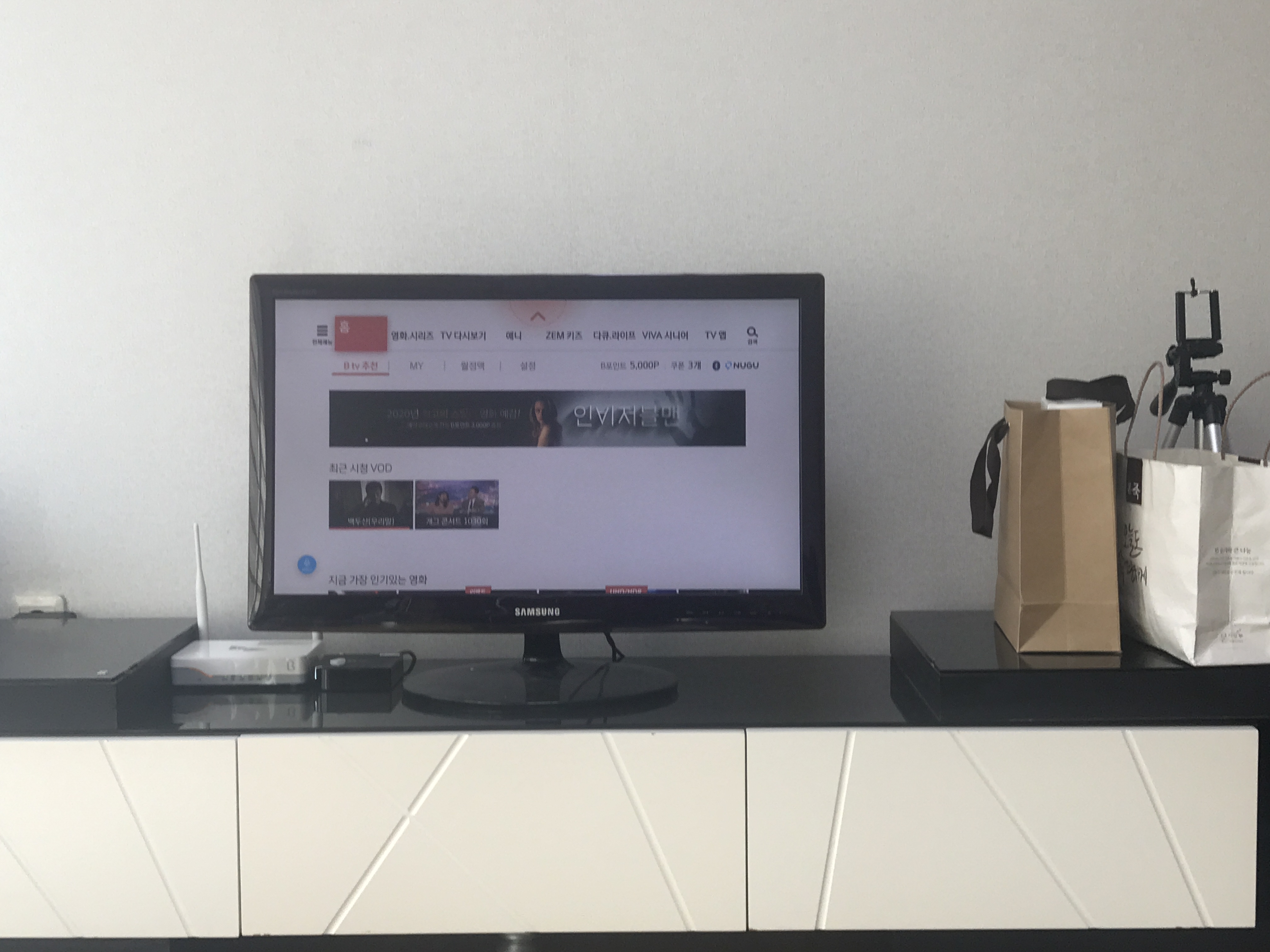 SKB 셋톱박스 설치 및 TV 셋팅이 완료되고 잇습니다 ㅋㅋ