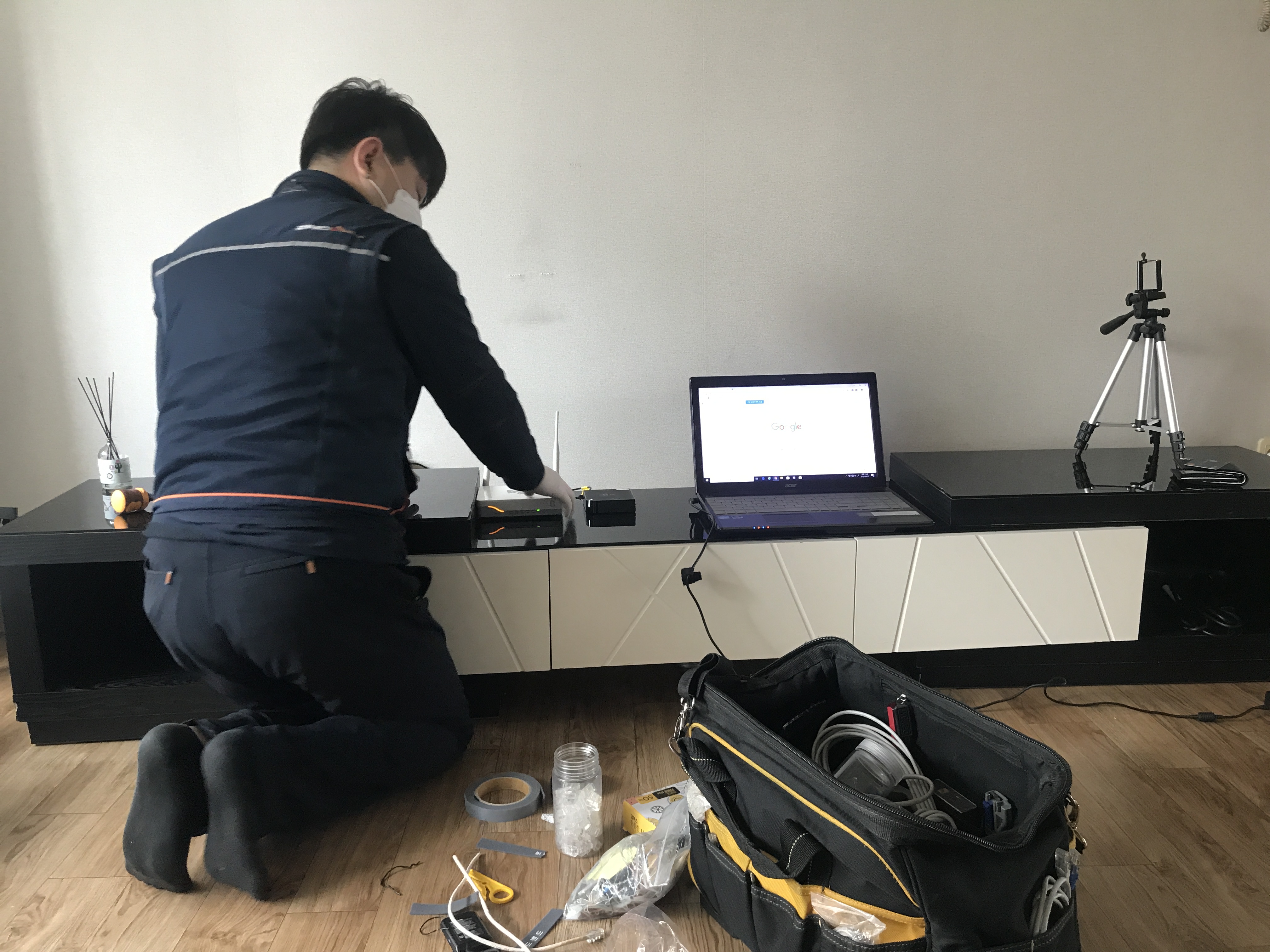 집에 케이블 작업중이시네요 ㅎㅎ