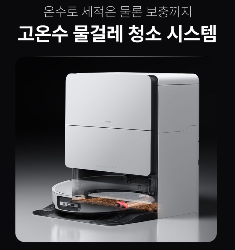 - 자동 물걸레 세척 및 물통 채움: 손쉽게 물걸레 관리 가능