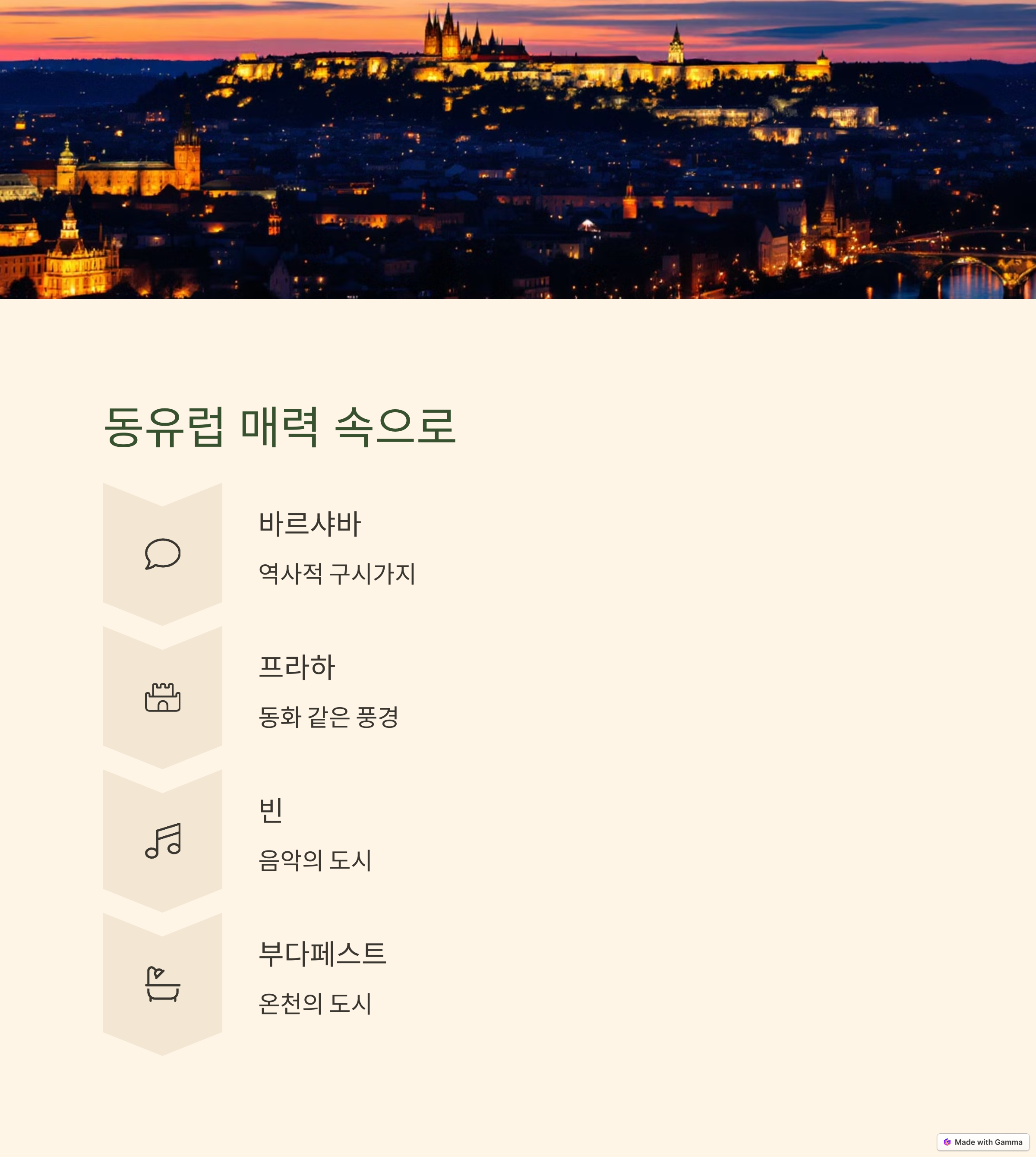 폴란드(바르샤바) → 체코(프라하) → 오스트리아(빈) → 헝가리(부다페스트)