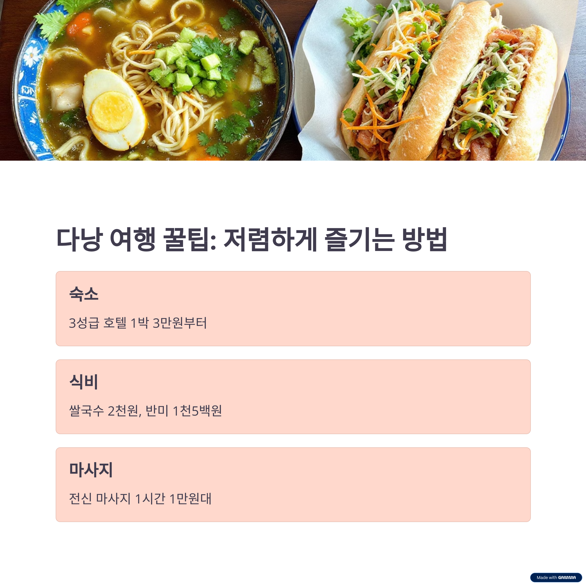 첫 번째로 추천드릴 곳은 베트남 다낭입니다. 다낭은 저렴한 물가와 아름다운 해변이 조화를 이루는 곳이에요. 한 끼 식사를 5,000원 내외로 해결할 수 있고, 현지 음식인 반미나 퍼는 정말 맛있죠. 지난해 다낭의 미케 해변에서 석양을 보며 맥주 한 잔을 즐겼던 기억이 아직도 생생합니다. 해변 근처의 리조트는 가격이 저렴하면서도 품질이 좋아 가성비가 훌륭해요. 또한, 호이안 올드타운과 같은 근교 여행지도 저렴한 비용으로 방문할 수 있어 알찬 여행이 가능합니다.