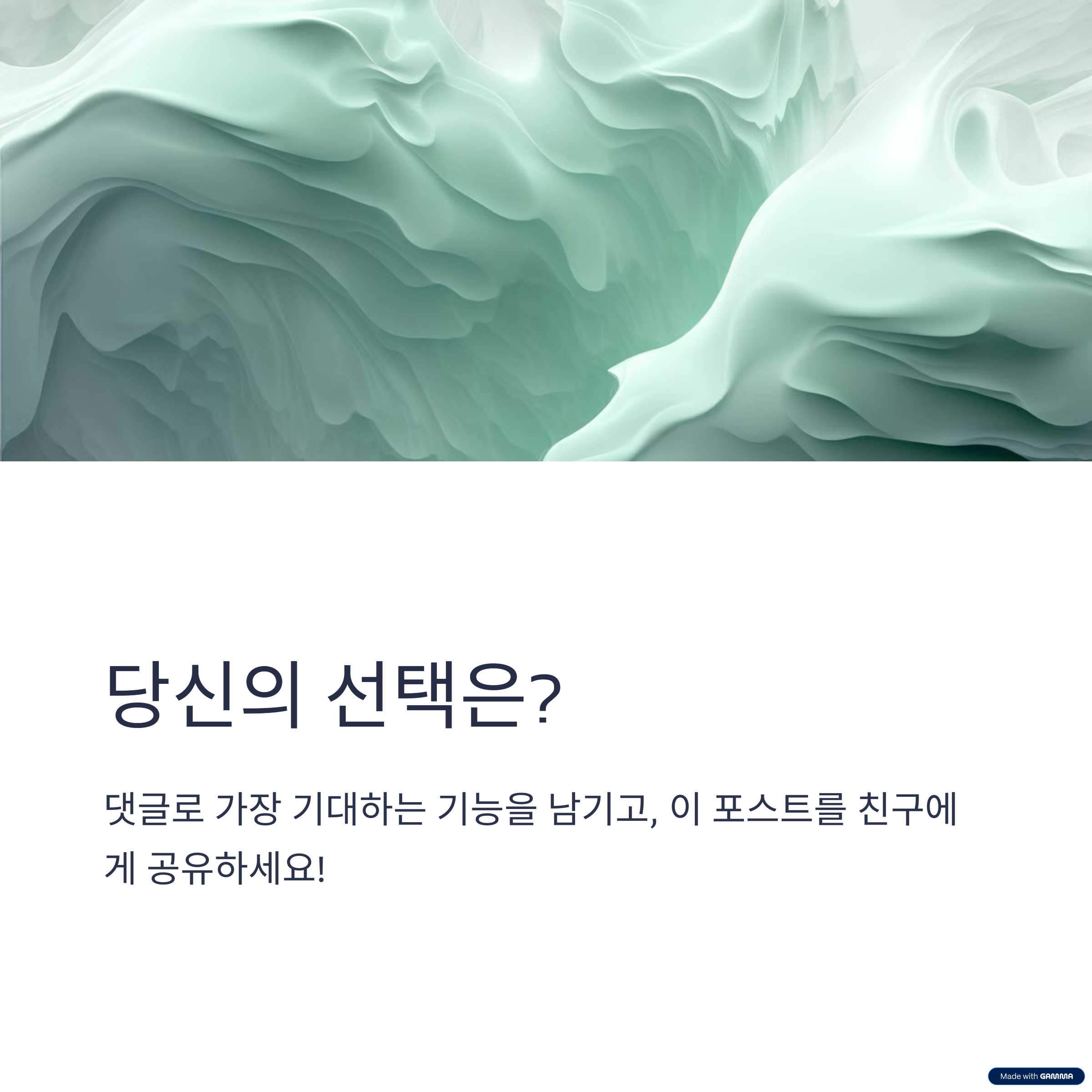 여러분은 어떤 스마트폰 기능이 가장 기대되시나요? 혹은 사용 중인 기기에서 느끼는 아쉬운 점은 무엇인가요? 댓글로 자유롭게 여러분의 생각을 공유해주세요!