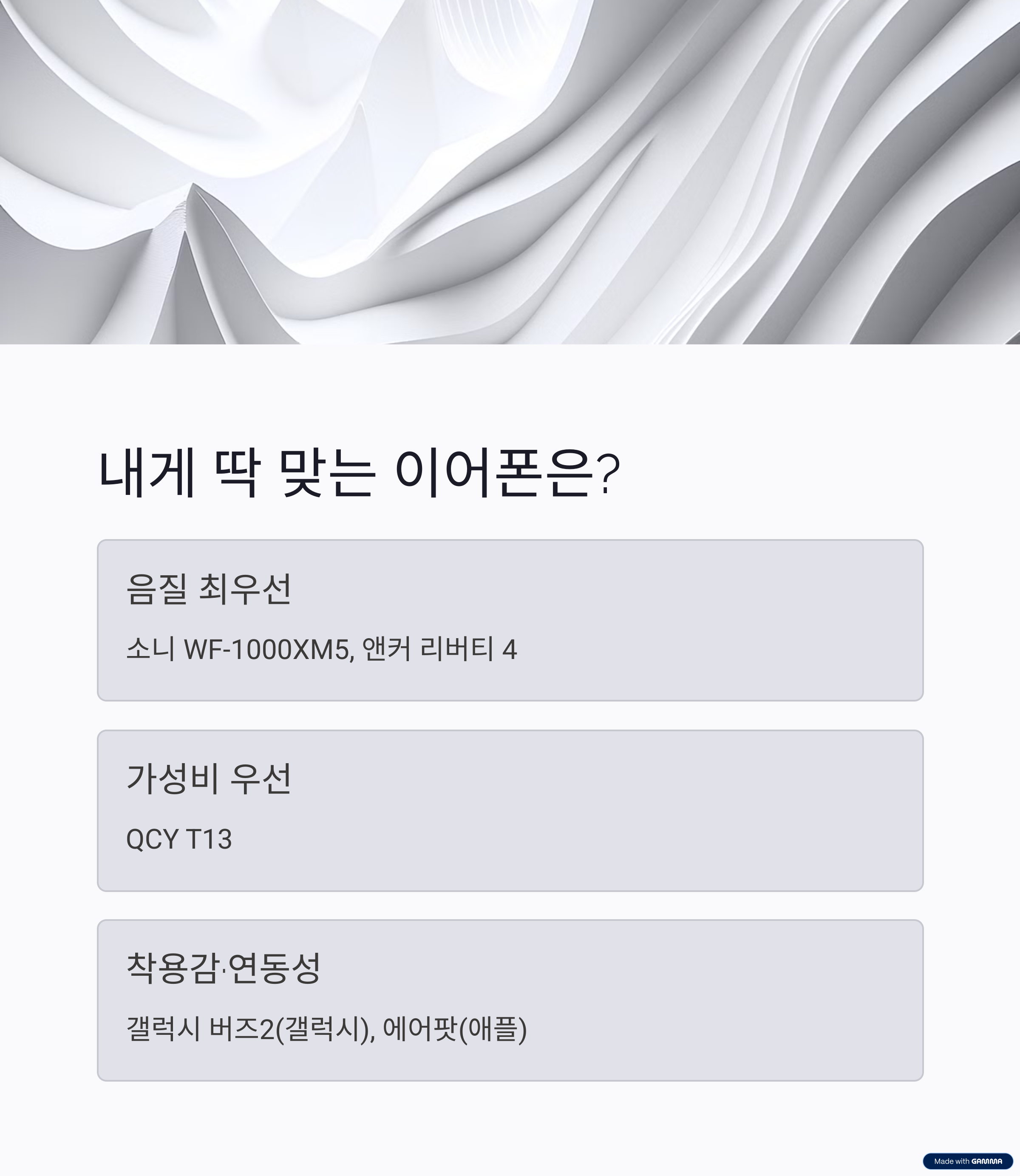여러분은 어떤 무선 이어폰을 사용하시나요? 가성비, 음질, 착용감 중 어떤 점을 가장 중요하게 생각하시나요? 혹시 추천하고 싶은 모델이나 궁금한 점이 있다면 댓글로 공유해주세요! 여러분의 소중한 의견이 다른 독자들에게도 큰 도움이 될 거예요.