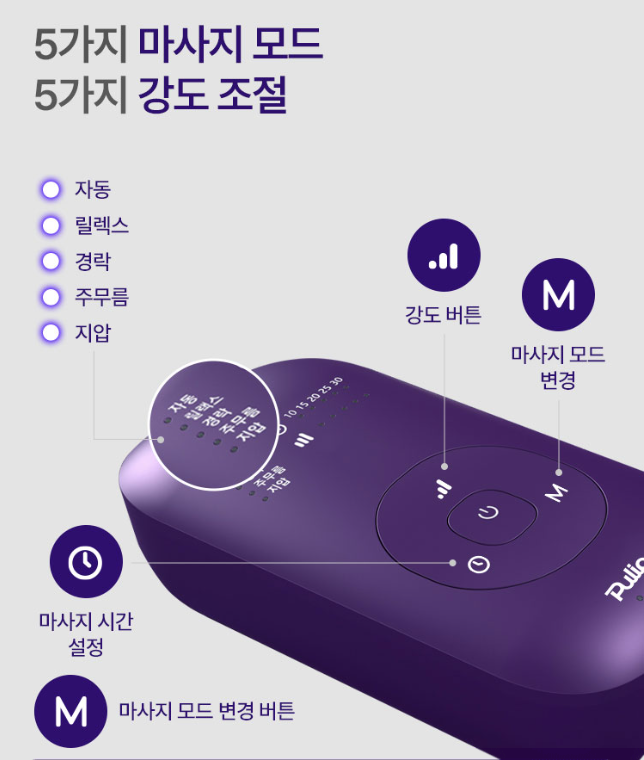 압력 강도가 단계별로 세분화되어 있어서 상황에 따라 맞춤 사용이 가능합니다.